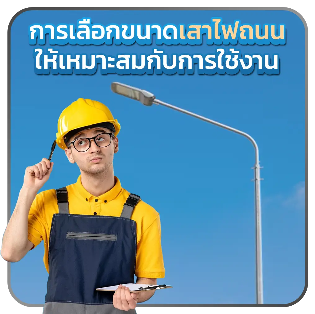 การเลือกขนาดเสาไฟถนนให้เหมาะสมกับการใช้งานต้องพิจารณาหลายปัจจัย เช่น ความสูงของเสา วัสดุที่ใช้ โครงสร้าง ระยะห่างระหว่างเสา และประเภทหลอดไฟที่ใช้ การวางแผนอย่างเหมาะสมจะช่วยเพิ่มความปลอดภัย ลดค่าใช้จ่ายในระยะยาว และเพิ่มประสิทธิภาพการใช้งาน หากคุณยังไม่แน่ใจในการเลือกขนาดเสาไฟถนนที่เหมาะสม สามารถปรึกษาผู้เชี่ยวชาญหรือผู้จำหน่ายที่มีความชำนาญ เพื่อช่วยให้คุณตัดสินใจได้อย่างมั่นใจมากขึ้น